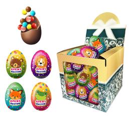 ЯЙЦО ПАСХАЛЬНОЕ из глазури с сюрпризом, блок 24 шт. (20г х 24 х 6)